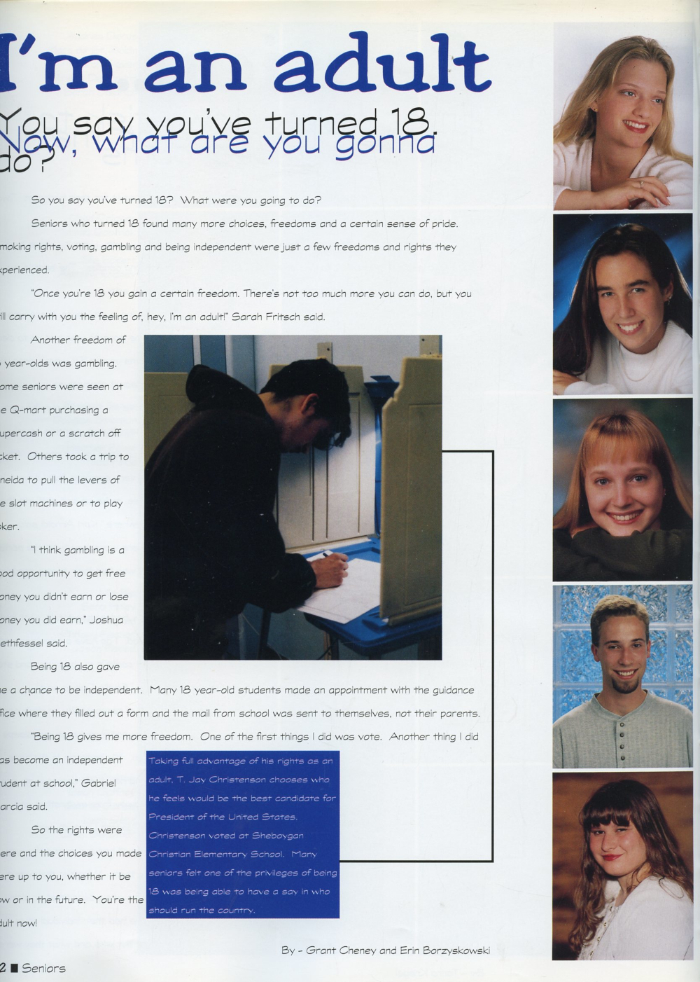 1997 Sheboygan South High School Yearbook Page 72: Mary Glaubig, Stephanie Gorr, Jocelyn Gularek, Nathan Hartle, Lisa Heck.