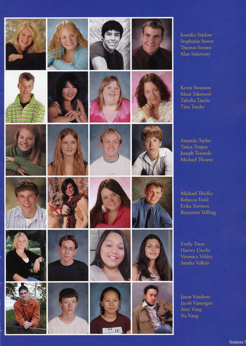 2006 Sheboygan North High School Yearbook Page 133: Jennifer Stielow, Stephanie Stover, Thomas Strawn, Alan Sukowaty, Kevin Swanson, Maui Takemori, Tabitha Tasche, Tina Tasche, Amanda Taylor, Tanya Tenpas, Joseph Teronde, Michael Theune, Michael Thielke, Rebecca Todd, Erika Torrison, Benjamin Trilling, Emily Tutas, Harvey Utecht, Veronica Valdez, Sandra Vallejo, Jason Vandrese, Jacob Vanengen, Amy Vang, Na Vang.