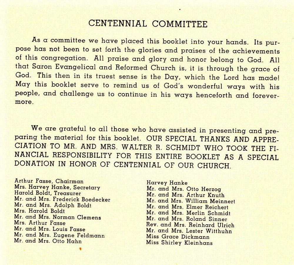 1955 Saron Evangelical and Reformed Church 100th Anniversary: Page 28.