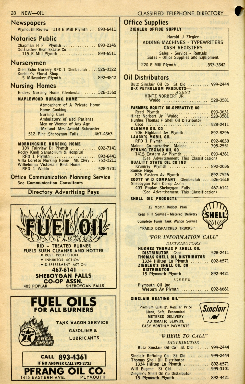 1965 General Telephone Company Telephone Book Page 72: Newspapers - Oil Distributors.