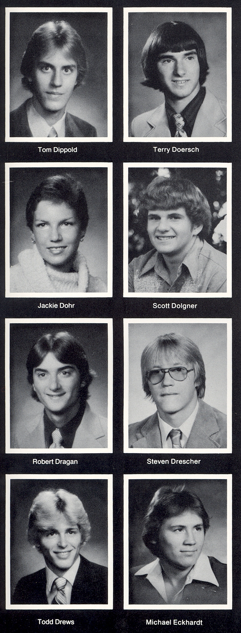 1981 Sheboygan North High School, Page 103. Tom Dippold, Terry Doersch, Jackie Dohr, Scott Dolgner, Robert Dragan, Steven Drescher, Todd Drews, Michael Eckhardt.