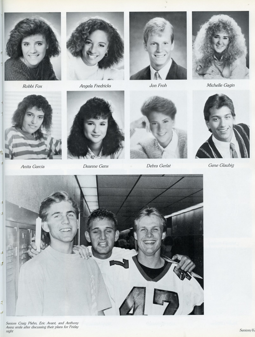 1989 Sheboygan South High School Yearbook Page 61: Robbi Fox, Angela Fredricks, Jon Froh, Michelle Gagin, Anita Garcia, Deanne Gens, Debra Gerlat, Gene Glaubig.