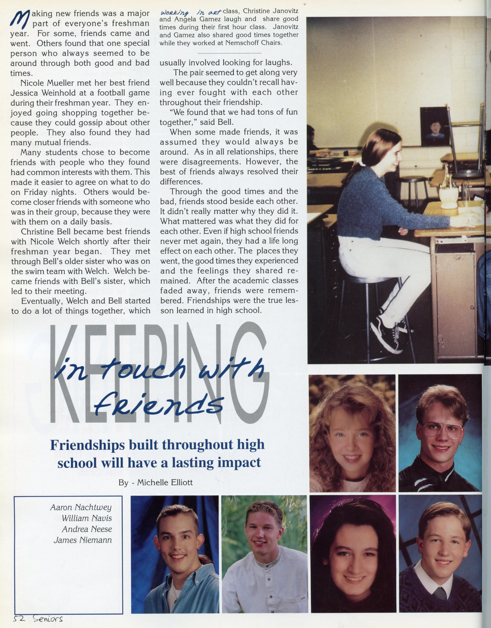 1996 Sheboygan South High School Yearbook Page 52: Michelle Parks, Michael Parr, Aaron Nachtwey, William Navis, Andrea Neese, James Niemann.