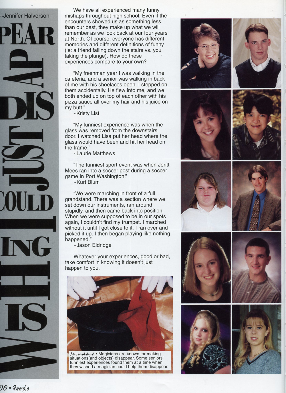 1998 Sheboygan North High School Yearbook Page 100: Danielle Daum, Jody Davidson, Melissa DeLeon, Joseph Deomampo, Shawna Doyal, William Dussault, Jennifer Eisold, Jason Eldridge, Deeann Felde, Nicole Fetterer.