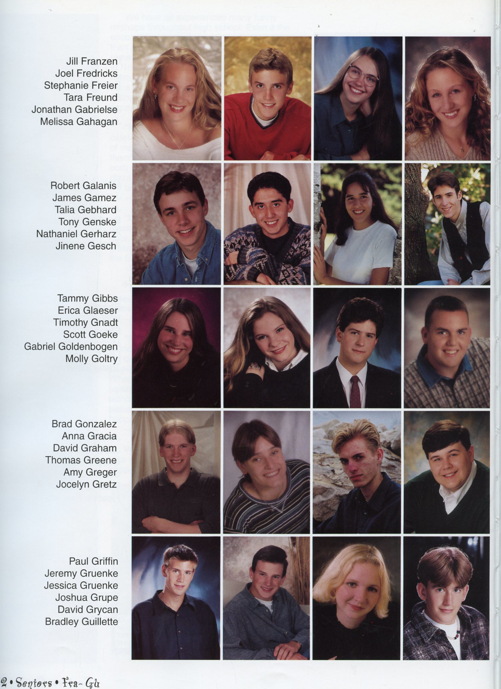 Erica Glaeser, Timothy Gnadt, Scott Goeke, Grad Gonzalez, Anna Gracia, David Graham, Thomas Greene, Paul Griffin, Jeremy Gruenke, Jessica Gruenke, Joshua Grupe.
