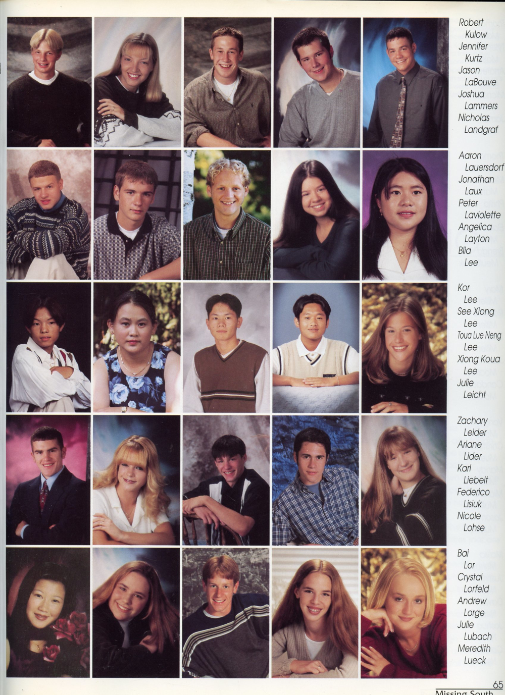 65: Robert Kulow, Jennifer Kurtz, Jason LaBouve, Joshua Lammers, Nicholas Landgraf, Aaron Lauersdorf, Jonathan Laux, Peter Laviolette,